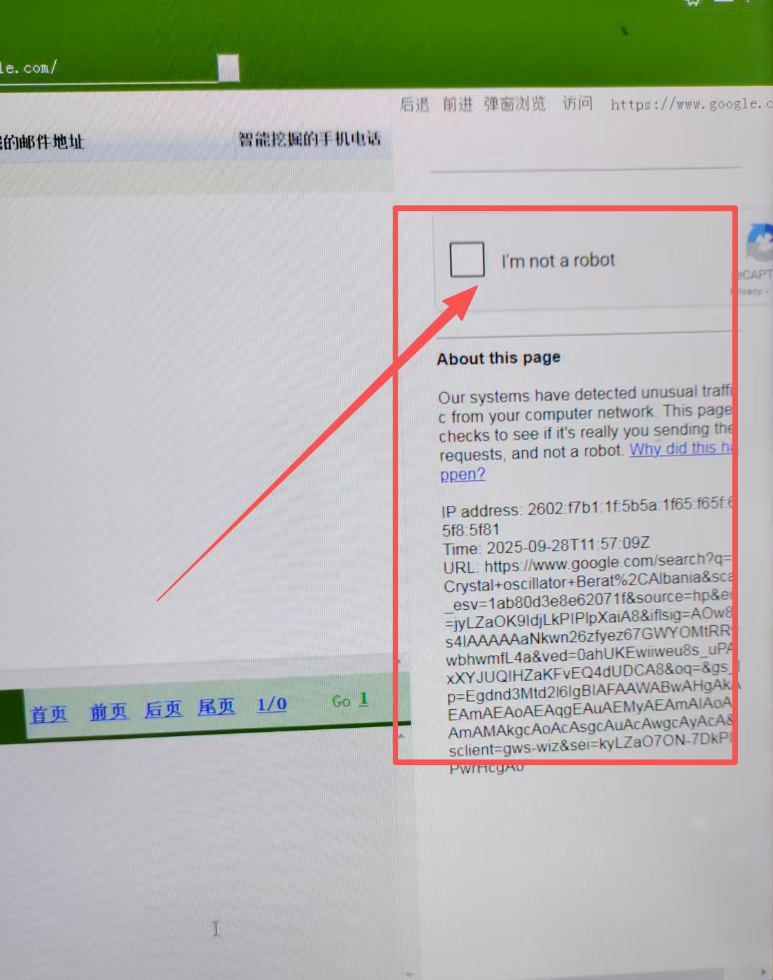 如果采集不到数的,要查看右边的浏览器中打开的谷歌搜索是否有类似如下的验证码: