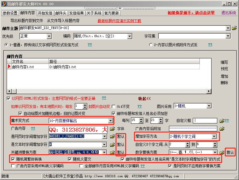 我们的目标是每发出的一封邮件的标题、内容、发信人姓名都要变,并且设置要非常简单,易用性强。 -
