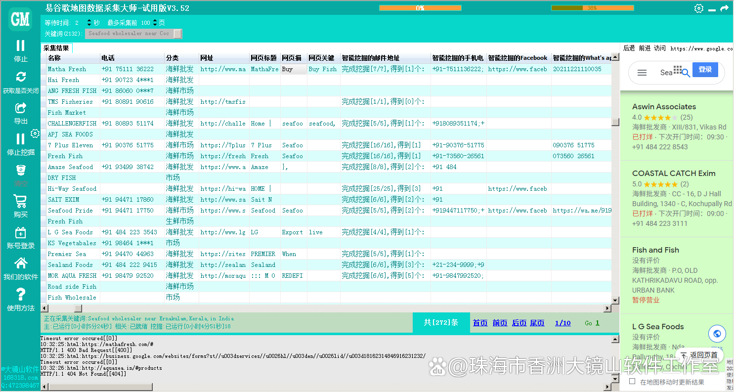 •功能:基于谷歌地图批量采集全球任意国家/地区的企业地址、电话、邮箱,支持关键词筛选(如“stainless pipe”),并智能挖掘Facebook、LinkedIn等社交账号链接。