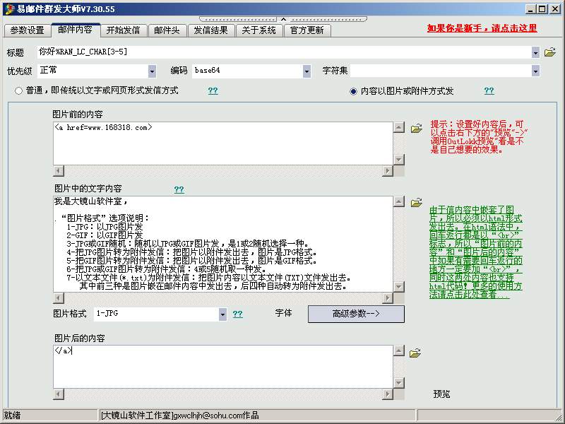 以图片形式发信方法*****温馨提示:如果你是新手,还不会使用群发软件,可先照 《群发软件最优设置》 说的设置做